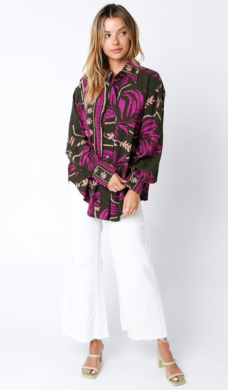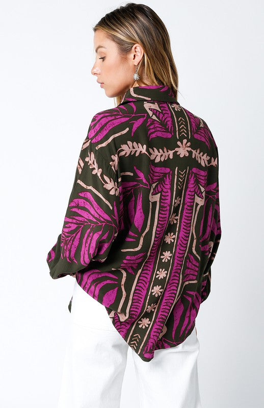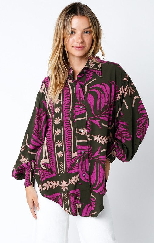 Puffy long sleeves and working buttons all the way down. This print is a stunner, too.